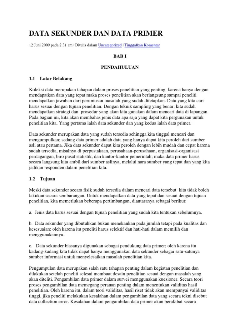 Contoh Data Primer Dan Data Sekunder : Page 60 Pengaruh Perceived : data primer data primer adalah secara langsung diambil dari objek / obyek penelitian oleh peneliti perorangan maupun organisasi.